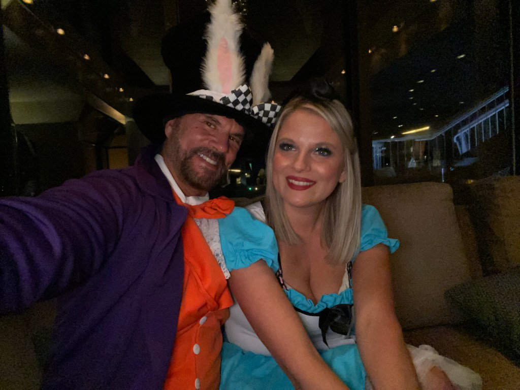 We contacted Royal Caribbean’s wedding department and they said we can have a wedding on embarkation day and family can attend, but they already had one wedding booked for that day and they only allow one per day. Luckily, since Lorenzo is a celebrity they made an exception and we were able to be wed in The Wonderland restaurant, which they typically don’t do weddings at. I am a big fan of Alice in Wonderland! Actually, our first Halloween we had together I went as Alice and Lorenzo went as the Mad Hatter. So it was perfect!