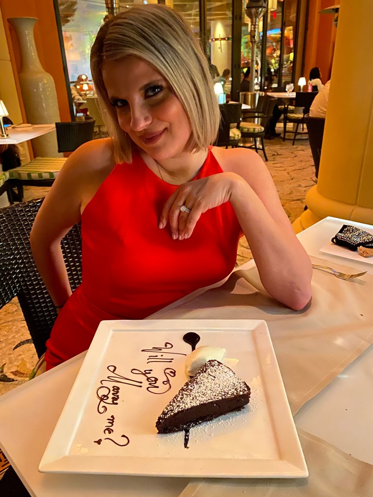 We had a table of ladies behind us who had taken pics and filmed it for us, which I didn’t know at the time, I actually had no idea this was going to happen at all. We had only been dating officially for 8 months. It was a complete surprise. The ladies bought our dinner and I follow one of them on Instagram still to this day. She got engaged shortly after we did and just had her first baby and named him Lorenzo!