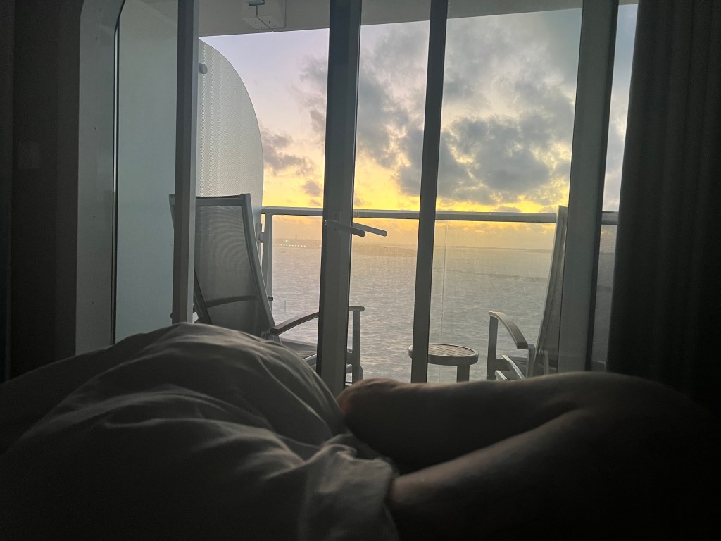 I’ll spare you the rest of the details but it was such an amazing first day. I will say though, if you get motion sickness at all, definitely opt for a room in the middle or toward the front of the boat. We were toward the back and the first night I was pretty sick in the wee hours of the morning. It also was October, which is hurricane season so the waters were a little rough heading into the Caribbean. Once we were in the Caribbean it was smooth sailing (literally). But the view from our bed was incredible!
