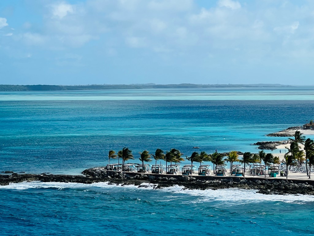 The first day was Coco Cay, Royal Caribbean’s private island. We had booked an all day poolside cabana with drink service, but we had to cancel because I was still so sick from the boat ride over. I was hopped up on Dramamine and so sleepy even though it said it was non-drowsy. So we had to just enjoy the view from our balcony.