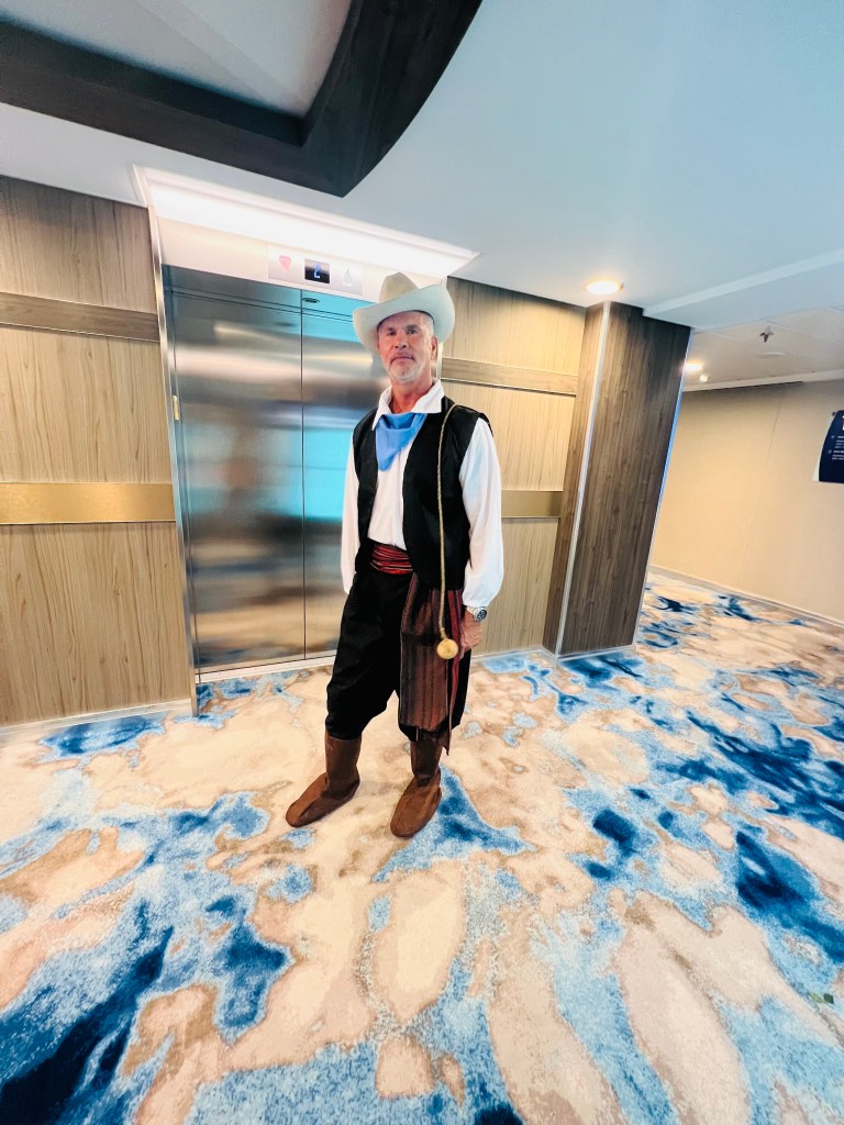 Next day we were at sea. We had a really relaxing day by the pool, I spent time with my new friend I had met the day prior, not the guy I snorkeled with but the other lady I had met. Lorenzo wanted to read and I am terrible at not interrupting his book reading with my incessant chatter. Then we met up for lunch, laid in our chairs by the pool and later that evening there was a Halloween party. I was so excited, Halloween is my favorite holiday and to spend it on the boat was a great time! They had a Halloween parade, everyone dressed up amazingly well and we met up with the Admiral Farragut peeps. I went as a llama since it was my first Halloween as Mrs. L Lamas (llamas) and he went as a gaucho, an Argentine cowboy. It was perfect since he’s 1/2 Argentine.